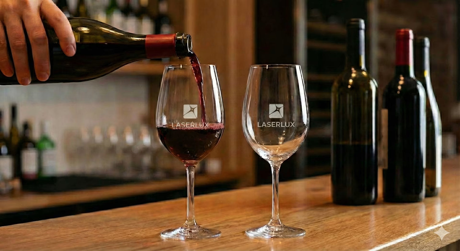 Met de lasergravures van Laserlux combineer je uitstraling met efficiëntie. Door een subtiele maatstreep te integreren in jouw logo, schenk je altijd exact de juiste hoeveelheid.